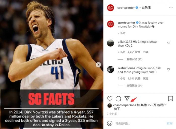 前独行侠球员帕森斯进行了点赞,这样的新闻让人感慨,因为现在联盟的风气真不一样了!诺维茨基毫无疑问是最成功的的非美籍球员之一了,甚至可以说欧洲第一人!他在NBA拿到了1个总冠军,1个FMVP,1个MVP,14次入选全明星,12次入选年度最佳阵容,另外他还是NBA历史总得分榜第六位!