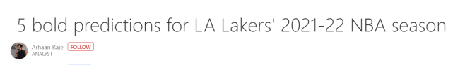 湖人新赛季五大预测出炉!詹姆斯MVP浓眉DPOY,夺冠全程无需抢七
