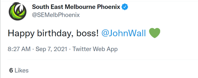 来源:24直播网09-07 10:0124直播网9月07日讯,澳大利亚男篮联赛(NBL)球队东南墨尔本凤凰在社媒上写道:“生日快乐,老板@约翰-沃尔!”是的,这支近日传出要和周琦签约的球队,它的老板之一就是目前效力于火箭的约翰-沃尔。沃尔在2020年11月宣布购买凤凰队的部分股份,成为这支球队的小老板之一。今天是沃尔的31岁生日。
