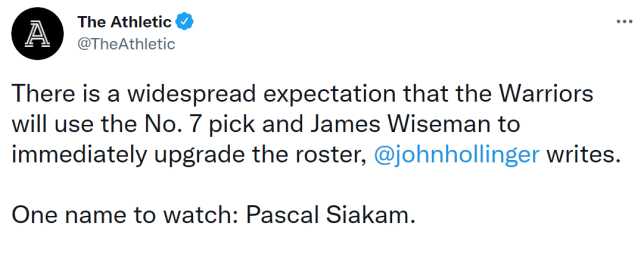 曝勇士寻求阵容升级!7号签+怀斯曼成筹码,交易目标是西亚卡姆?
