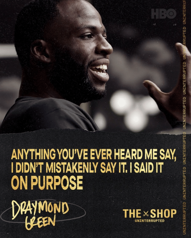 最近格林做客一档名为《The Shop》的节目,他谈到了自己的这个武器,格林说:“你听到的我说过的任何话,都不是我不小心说出的,而是我有意说出的。”格林最为著名的一句话如今都已经家喻户晓了,他对杜兰特说:“你没来之前我们就已经是总冠军了”。这句话直接导致了杜兰特的离开,现在杜兰特加盟篮网,虽然他嘴上说自己不是因为勇士队的原因而离开的,但是球迷们都知道,格林的这个言论绝对是戳到了杜兰特的心灵。所以格林的言论不但是伤害对手,而且同样也会是伤害自己的队友。
