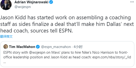 此前独行侠前主教练卡莱尔宣布辞职,离队后成为步行者新帅(签下一份4年2900万美元的肥约),如今经过双方的谈判,湖人助教基德正式成为独行侠新教练,双方已经签下正式合同;基德得到了独行侠新总裁和特别顾问诺维斯基以及库班身边其他人的大力支持,卡莱尔也推荐基德当主帅。