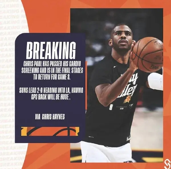 其次NBA著名的老炮保罗,就是那个每场赛后厚着脸皮跟队友视频电话的老汉,看到自己的位置快要被从CBA镀金回来的佩恩抢走,顿时从病床跃起,拿着球衣就往机场跑。