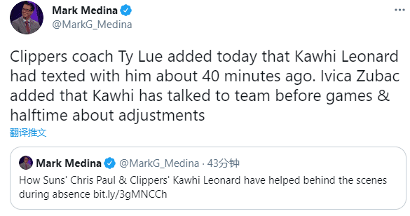 快船远赴客场挑战太阳,小卡因伤留在洛杉矶接受治疗,因伤连续缺席西决G1和G2;不过伤停期间,小卡仍旧心系球队,和队友发短信以及远程指导球队,如此操作和保罗一样,因为保罗也是这样做的,至于保罗能否出战G2,暂不清楚,不过确诊后他一直没有出现症状,预计很快能够复出。