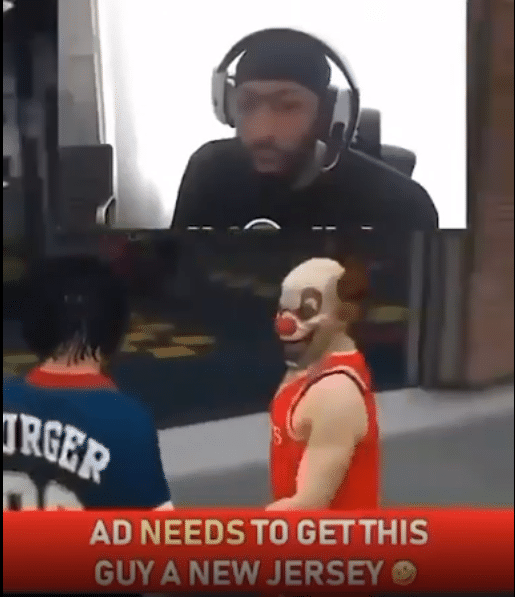 来源:24直播网06-20 11:0224直播网讯 北京时间6月20日,湖人核心浓眉哥进行游戏直播,在直播过程中有对手的人物形象身穿了一件哈登火箭时期的13号球衣。
