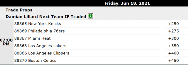 来源:24直播网06-18 11:0324直播网讯北京时间6月18日,据此前报道,多支NBA球队已经向开拓者询价利拉德,这位波特兰的超级球星如果被交易,最有可能前往哪支球队呢?最新赔率显示,尼克斯排名第一,费城位居第二,而缺少交易筹码的湖人,位居第四位。