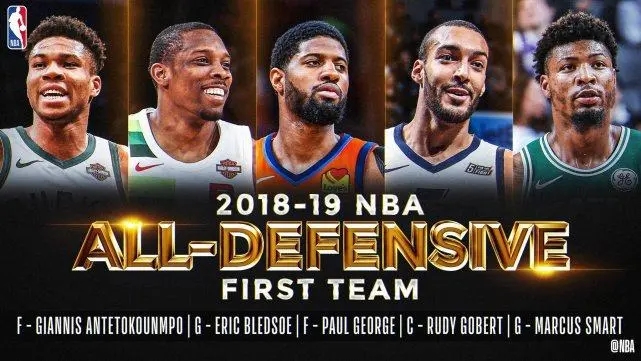 来源:24直播网06-16 20:26 24直播网讯 NBA官方公布了2018-19赛季最佳防守阵容名单。字母哥、戈贝尔、乔治、斯马特和布莱德索入选最佳防守阵容第一阵,恩比德、莱昂纳德、克雷-汤普森、德雷蒙德-格林和霍勒迪入选最佳防守阵容第二阵。值得一提的是戈贝尔连续第三年入选一防,是字母哥第一次入选一防。