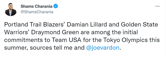 来源:24直播网06-16 14:5724直播网讯北京时间6月16日,据The Athletic报道,开拓者球员利拉德和勇士球员德雷蒙德-格林都已经对美国男篮做出初步承诺,他们愿意随队参加今年夏天的东京奥运会。