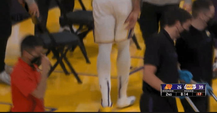 值得一提都是浓眉把球鞋都拼掉了,第二节8分多钟,浓眉鞋子掉了,他第一时间把球鞋扔到场外,赤脚回防,然后浓眉示意沃帅喊暂停,趁着暂停浓眉重新穿上球鞋。