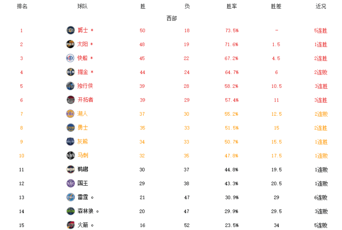 来源:24直播网05-09 14:5024直播网讯 NBA常规赛进行到现在已经到了尾声阶段,大部分的球队都只剩下4-5场比赛了,这其中最受人关注的是东西部的附加赛,今年的赛制和往年都不同,常规赛压缩到72场,增加附加赛,东西部第7-10名参加,附加赛全部都一场定胜负,第7和第8之间对决,胜利的一方锁定常规赛第7,输球的一场将与第9和第10之间胜者争夺常规赛第8的位置。现在我们一起来看看东西部附加赛的最新格局。