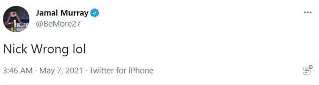 来源:24直播网05-07 19:5324直播网讯 北京时间5月7日,福克斯体育评论员尼克-怀特谈到了掘金球星约基奇。他认为约基奇今年大概率会拿下MVP,但是他可能是近35年最菜的MVP。结果,掘金球员贾马尔穆雷立刻在社交媒体上发表自己的观点,他直接评论:尼克-错误。(Nick wrong)