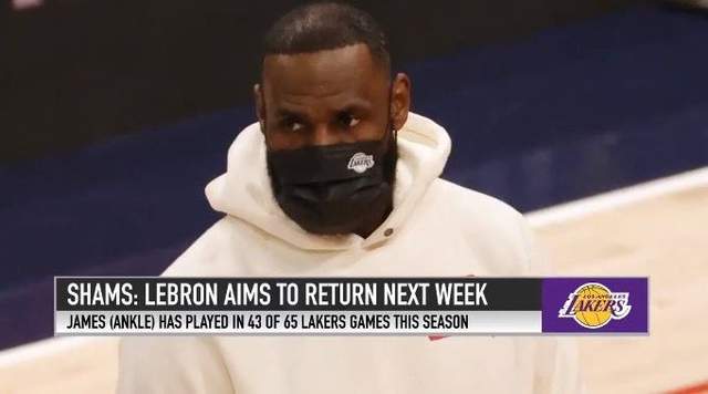 现在关于詹姆斯何时复出,也是湖人球迷最关心的问题。最近,美知名记者Shams爆料,詹姆斯计划在下周复出。而Shams个人的猜测,詹姆斯将会在12日对阵尼克斯或者13日对阵火箭的主场比赛中复出。他同样还表示,湖人方面和詹姆斯对于脚踝伤势都非常的谨慎,并不急于让詹姆斯复出。双方都希望詹姆斯脚踝伤势完全恢复之后进行复出。现在詹姆斯的出战状态已经被更改为每日观察名单。湖人已经开始为詹姆斯的复出做准备了,如果真像Shams说的那样,詹姆斯下周复出,那詹姆斯还能继续找找状态。