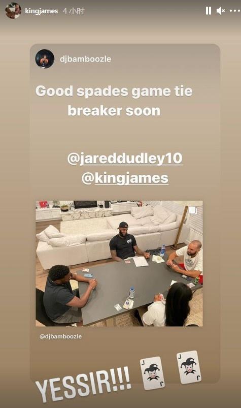 没有到现场观战的詹姆斯,更加放松,他在个人社媒上晒出了自己与队友杜德利一起打牌的照片,这种紧张时刻还能如此放松,只能说明老詹见过各种场面,内心很淡定!这也算是给湖人球迷宽宽心了,当老詹完全健康的情况下他有能力做到一些一般37岁老将做不到的事!