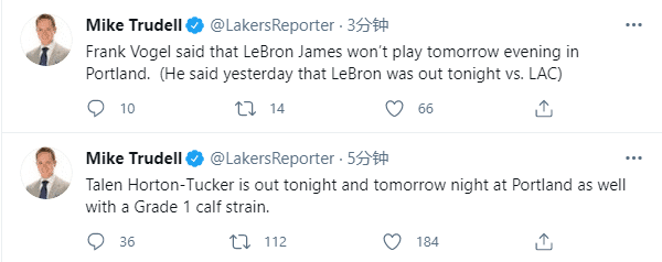 詹姆斯因伤休战,施罗德违规被隔离,队内还有多人遭遇小伤,其中霍顿-塔克伤情确诊为小腿一级拉伤,无缘对阵快船和开拓者;湖人队伤病满营,战绩还不好——37胜28负排在西部第六位,仅仅领先开拓者0.5个胜场,随时都可能跌出西部前六之列。