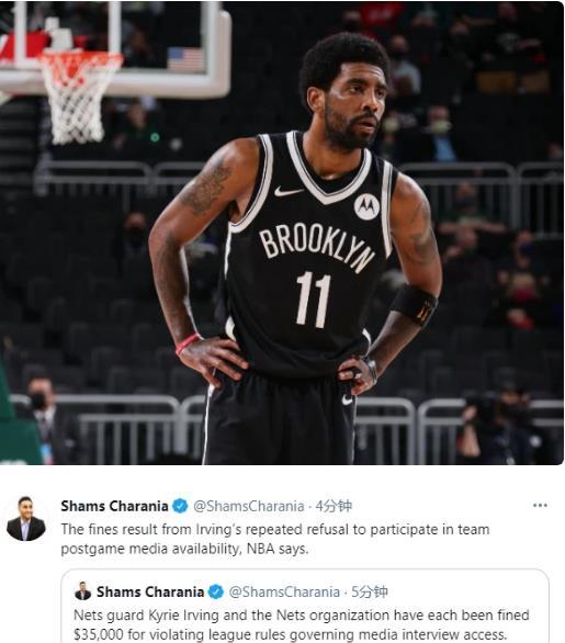 詹姆斯这边伤情不容乐观,欧文那边也为自己曾经的任性付出了代价,而且还连累了蔡老板要一起买单。因为此前多次拒绝媒体的采访,表示将用行动证明自己,欧文违反了NBA球员采访条例,5月6日,NBA再次对欧文开出罚单,欧文和篮网队分别被处罚了3.5万美元,值得一提的是去年12月,同样因为赛后拒绝采访,欧文和篮网队也分别被罚款了2.5万美元,两次任性的行为,欧文被罚了6万美元,蔡老板也是跟着躺枪。