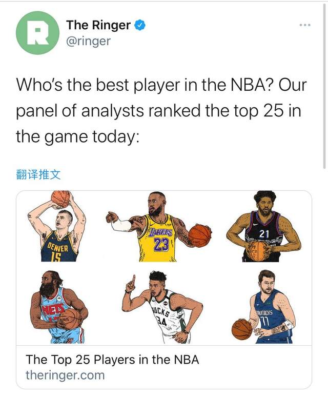 这家媒体评选的前五名球员分别是约基奇、詹姆斯、恩比德、库里和杜兰特,这说明他们是依据本赛季MVP的榜单来进行评选的,因为约基奇目前领跑MVP榜单,而詹姆斯和恩比德则是曾经领跑过MVP榜单。至于库里和杜兰特也是发挥良好,进入前五并没有什么问题。从某种方面来看,这五个球员确实是现在的联盟前五,不过杜兰特的出场次数实在是太少了,换成伦纳德可能会好一点。