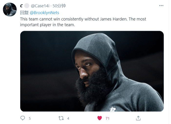 “篮网没有哈登无法持续获胜,哈登才是这支球队最重要的那个球员!”