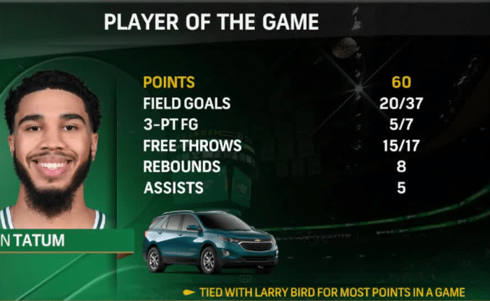 60分不仅创造了个人生涯新高,也追平了拉里伯德保持的队史单场得分纪录!最重要的是,凯尔特人最多的时候落后32分啊!32分也创造了NBA本赛季最大逆转!