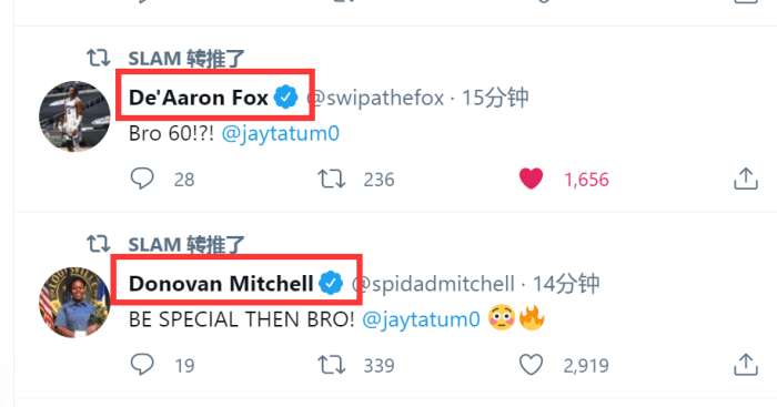 对于塔图姆这样的疯狂表现,不仅众美媒纷纷发推盛赞,可以看到,包括福克斯、米切尔这些球星也是第一时间对塔图姆表达了祝福!