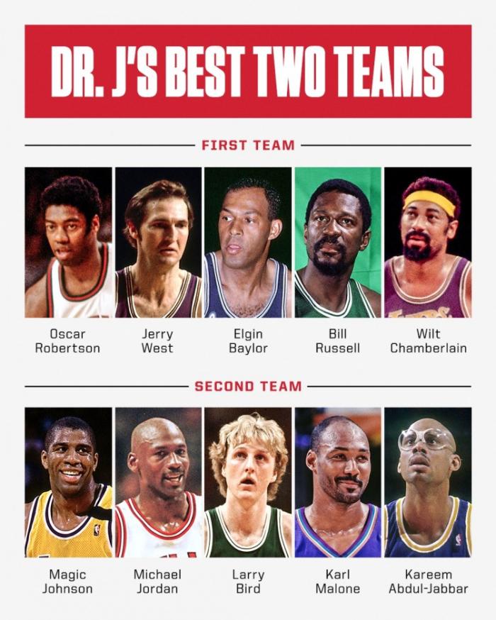 詹姆斯没有入选,J博士也给出了自己的理由,暗讽詹姆斯抱团。“他和很多球员打过球,是超级球队的引领者,他组建超级球队,在骑士,迈阿密和湖人都是如此,所以我的超级球队就不选择他了”。