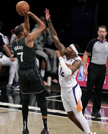 对于防守杜兰特这样历史级别的得分手。消耗体力,给他身体接触,才是对杜兰特最好的防守。因为凭借他的身高臂展,只要他跳起来准备出球的那一刻,你的防守对他已经没有丝毫影响了,进不进就完全取决于他自身的手感了!所以杜兰特即便是很久不上场打比赛,只要在体力充沛的情况下,没有人是可以完全限制他得分的!