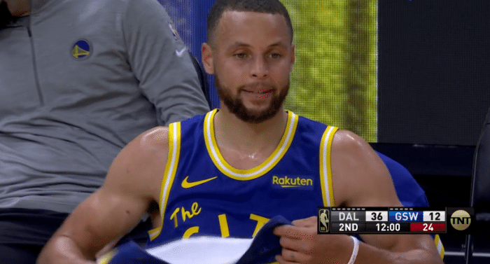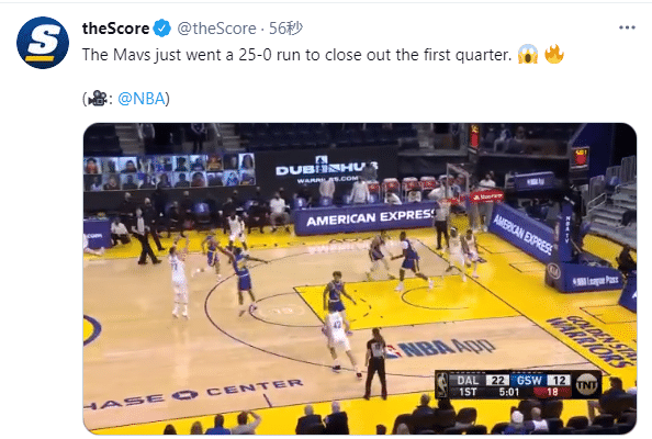 勇士首节最后8分40秒全队17投0中,被独行侠打出25-0攻势引热议,NBA官方以及美媒都发推转发;到了第二节,勇士前5分钟又被吊打,4-11又输7分,分差已经来到31分;此时镜头给到场边的库里,只见库里脸色铁青,落寞而又无奈,半场没打完,比赛就彻底花了吗?