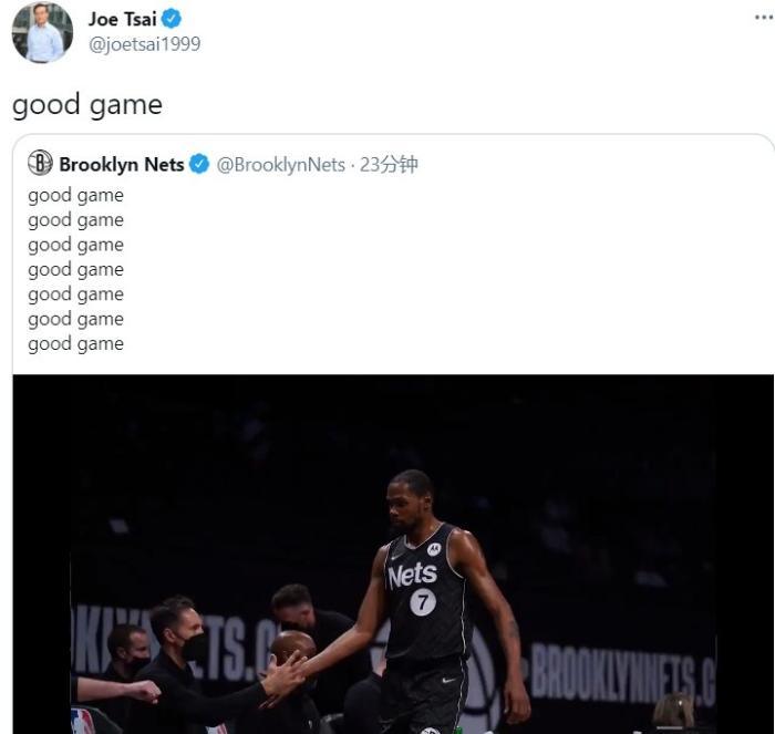不过他的表现还是震惊了很多了,这可是刚复出,打28分钟33+6,而且看起来并不是特别费力,球队就击败了西部第二的强队!赛后第一时间老板蔡崇信转发了篮网官推的推文附文“漂亮的比赛!”