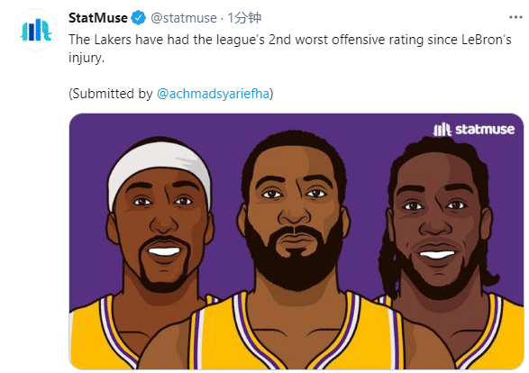 目前湖人35胜25负继续排在西部第五位,仅仅领先独行侠1.5个胜场,与掘金的差距变成3.5个胜场;湖人该是多么想念詹姆斯?据美媒StatMuse统计,自从詹姆斯受伤以来,湖人进攻效率是全联盟倒数第二;詹姆斯因伤连续缺席18场比赛,湖人仅仅拿到7胜11负的战绩。
