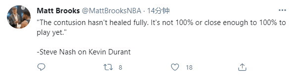 究竟杜兰特何时才能复出?纳什表示他不能确定杜兰特是否会在下一场复出,但杜兰特已经接近复出。