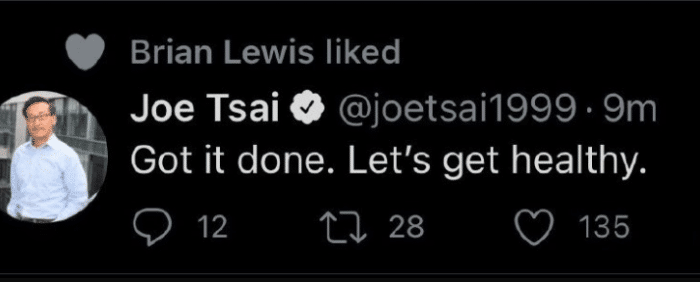 比赛结束之后,篮网老板蔡崇信在社交媒体上发文:“工作完成,下一步是保持健康!”