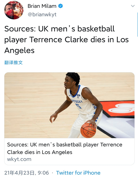 这样的消息确实是令人非常意外,要知道的是昨天,也就是4月22日,特伦斯-克拉克刚刚宣布签约经纪公司Klutch Sports,Klutch体育经纪公司是在昨天宣布了签下了杜克前锋Jalen Johnson、德州大学Kai Jones,阿肯色Moses Moody,肯塔基大学BJ Boston与Terrence Clarke(特伦斯-克拉克),佛罗里达大学Scottie Lewis,没想到的是一天之后就传来了这样的噩耗,这位已经确定参加NBA选秀的篮球天才就这样离开了,确实是令人扼腕叹息。