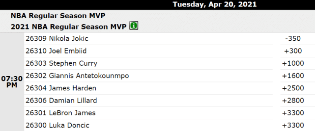 毫无疑问,掘金中锋约基奇仍是这一奖项的最大热门。他的赔率是-350,优势依然很大。排名第二的是恩比德,赔率是+300,结合战绩与数据,他是最能对约基奇构成威胁的竞争者。库里凭借4月份的出色表现,已经升至赔率榜的第三位,他的赔率是+1000。库里的数据足以媲美前两位中锋,战绩是阻碍他拿下又一座MVP奖杯的最重要因素。