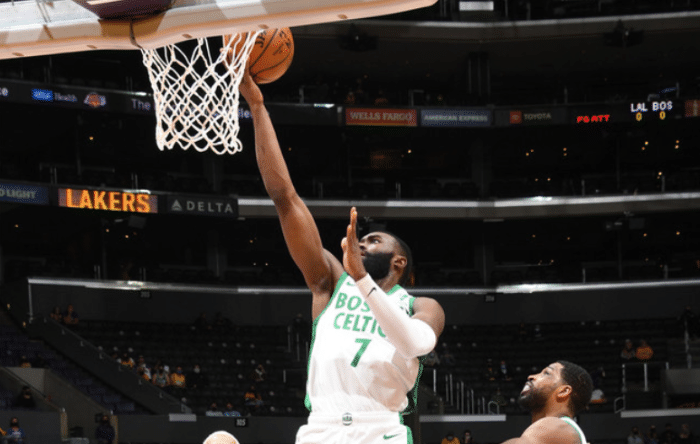 此役,杰伦布朗20中17,效率高得有些吓人,全场轰下了疯狂的40分9篮板,在场正负值更是高达+36!布朗这场比赛每一节的表现都非常平均,可以说在不知不觉之间拿到40分。最后一节,原本凯尔特人大比分领先,史蒂文斯已经鸣金收兵。但湖人替补险些制造大翻盘,无奈之下布朗只能重新登场。他上来就连得4分,锁定胜局。