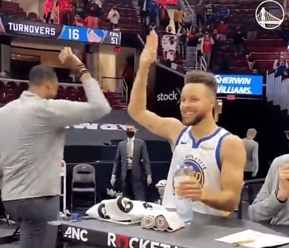 只差第八0.5胜场!库里中场休息玩手机,赛后与教练组击掌+高喊4连胜!