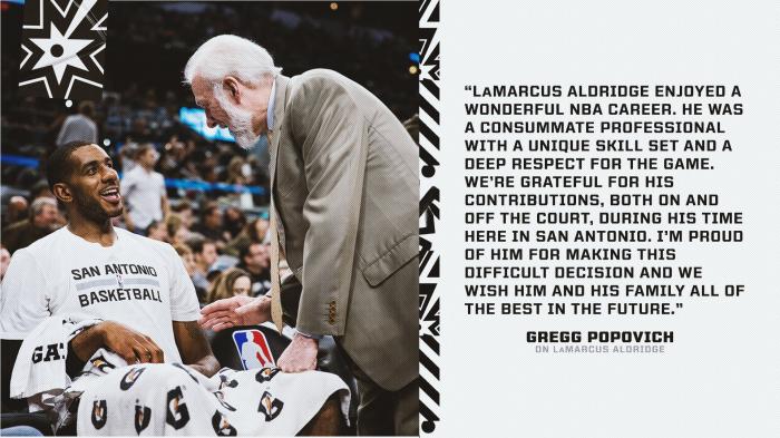 刚不久,马刺主帅波波维奇为阿德发声:阿德的NBA职业生涯非常精彩。他是一个完美的职业球员,拥有独特的球技,对比赛充满敬意,感谢他对马刺在场内外的贡献;我为他做出这个艰难的决定而感到骄傲,同时也希望他和他的家人在未来一切顺利。