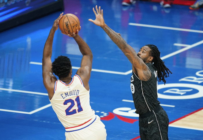 此役面对缺少4大巨头哈登、杜兰特、阿德和格里芬的篮网,费城在前三节打得非常稳健,三节结束领先10分。最后一节初段,费城打出攻势最多领先22分。不过此时篮网替补球员开始率队疯狂反扑,一波21-2的疯狂攻击波,篮网瞬间将分差缩小到3分。好在关键时刻,费城终于打破得分荒,最终稳住局面取得胜利。