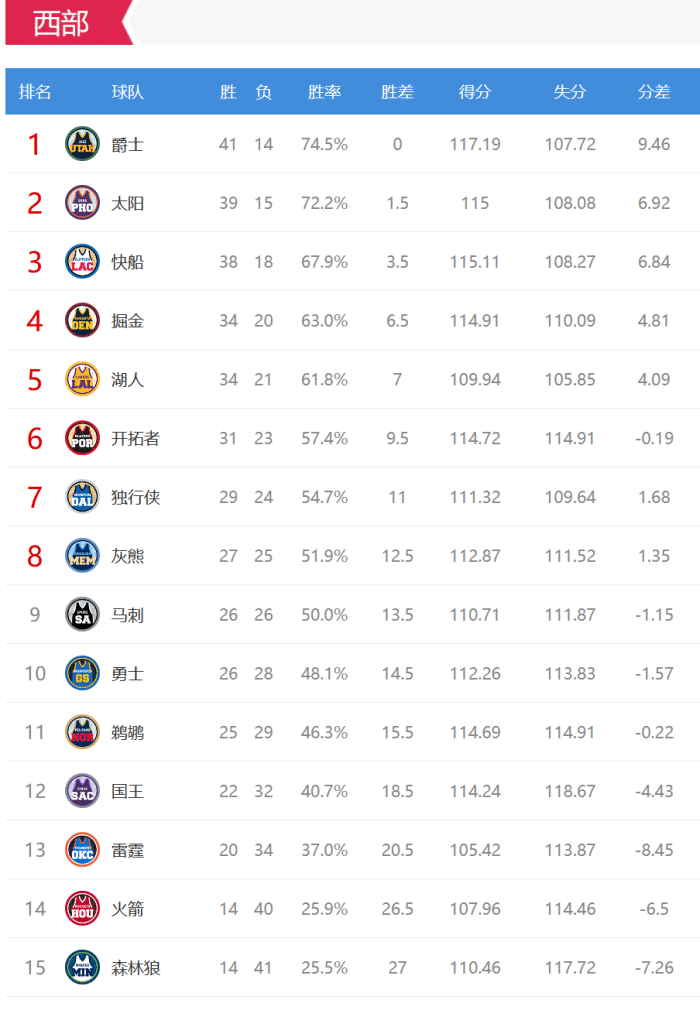 西部的局面更为清晰,爵士第一的位置还是相对稳固,14日的比赛,爵士106比96击败雷霆,博格丹诺维奇拿到23分,米切尔22分,雷霆的多特空砍42分。第2的太阳同样赢球,他们106比86大胜热火,太阳在第二节单节赢了14分拉开分差,保罗完成里程碑,抢断次数升至历史第5位,太阳延续稳定的发挥,他们在西部还是有一定的竞争力。