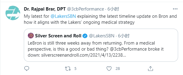 目前湖人队伤病满营,詹姆斯、浓眉两大巨头继续休战,虽然库兹马、庄神将会带伤出战于黄蜂的比赛,但湖人又一主力伤停——大莫里斯因脚踝扭伤缺席比赛;在詹姆斯和浓眉同时缺席期间,大莫里斯四月份场均贡献13.5分5.5篮板,投篮命中率51.5%。