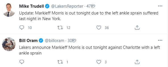 大莫是在上一场对阵尼克斯时扭伤脚踝,一度离场返回更衣室,重新绑紧脚踝后再次上场;客场背靠背对阵黄蜂,大莫因伤休战。