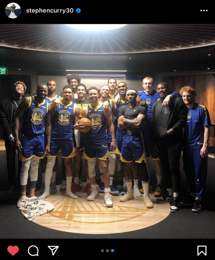 库里在社交媒体上晒更衣室画面以及合影,并且写道:现在还有点不知所措,我只能说谢谢你们,需要花点时间来享受这个,谦逊和祝福。