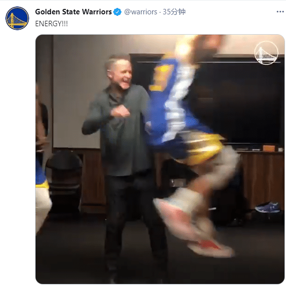 由于勇士众将表现良好,科尔决定给全队放假一天,明天全队都不要训练了,得知这样的好消息,勇士更衣室再次沸腾起来,库里从镜头前一闪而过,兴奋跳起太开心了。