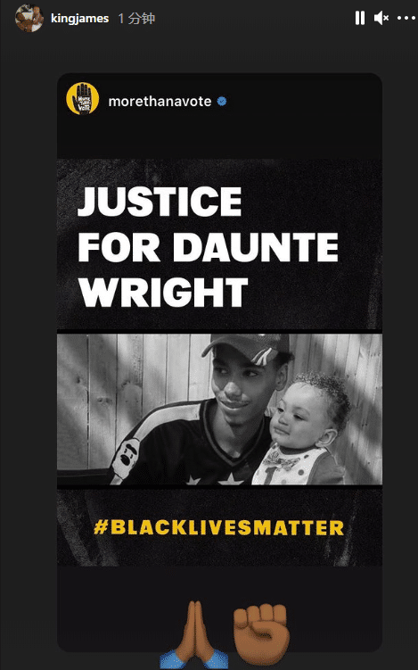昨晚20岁道特-赖特在开车途中和警察发生争执,随后赖特惨遭枪杀引起外界广泛的关注;不久前詹姆斯发声,在社交媒体上转发赖特抱着女儿的照片,并且写道:为道特-赖特伸张正义(祈祷+握拳表情)#黑人的命也是命。