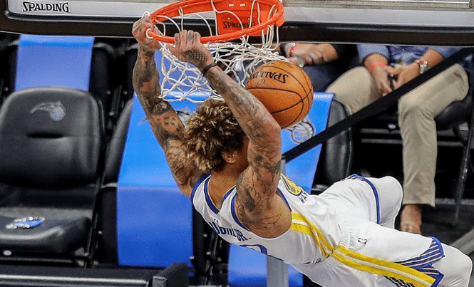 不同于上述几位勇士球员因为扣篮导致伤病,库里和扣篮有仇是因为他在赛场上遇到的尴尬。这还是在2019年年初,勇士对阵湖人,获得反击1打0良机的库里想要扣篮,但犹豫之间滑倒了,这种想要扣篮未遂的行为也在赛后成为了大家调侃库里的谈资。不过之后的全明星赛上,库里多次扣篮,还是找回了面子。