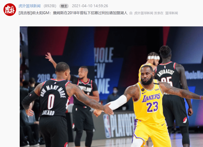 你找错人了!前太阳GM:詹姆斯曾在18年招募利拉德来湖人,被拒绝了!