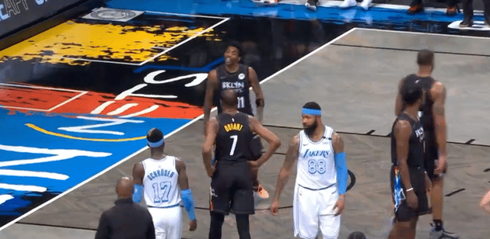 首节比赛,施罗德开场突破和外线三分全都开张,单节3投3中贡献9分,再加上庄神、大莫和塔克输送火力,湖人第一节一直压制篮网;到了第二节,施罗德突破、三分继续有,又是三连中,不过施罗德拼命防守被撞倒,腰部受伤有些不适,下场治疗后重新上场。