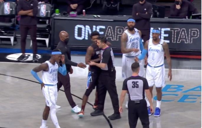 勇者相争,智者胜,在这场比赛中,湖人队主教练沃格尔的临场指挥显然要胜过篮网队的主教练,带着残阵,上半场双方打平,下半场,湖人率先发力,而当比赛进行到第三节结束还有8分多钟的时候意外发生了。