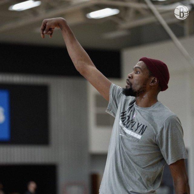 篮网备战湖人!杜兰特又戴小红帽练投篮,哈登入馆训练并接受治疗