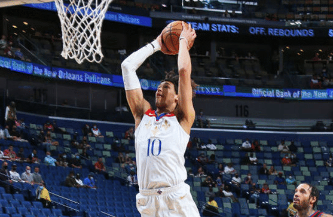 此役鹈鹕英格拉姆和刘易斯两员大将迎来复出,双方上半场打得势均力敌,半场打成50平。恩比德此役打得很吃力,而锡安半场轰下17分8板。下半场比赛,锡安延续自己火热的手感,下半场再轰20分。而恩比德的状态则更加低迷,下半场只得2分。虽然哈里斯全场拿下23分,但无奈双拳难敌四手,最终鹈鹕取得胜利。