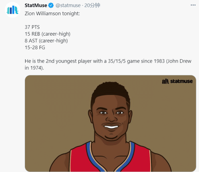 此役,费城在篮板球上罕见输给鹈鹕9个,而且全场20次助攻却出现了多达19次失误。这让费城很难去赢下比赛。而鹈鹕虽然英格拉姆的发挥不佳,但锡安爆炸的表现已经足够。此役锡安拿到37分15板8助,让他成为史上第二年轻的35+15+5球员,仅次于1974年的德鲁。