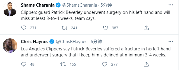 快船官宣!贝弗利骨折伤停3-4周,受伤真因曝光,发怒肘击保罗裆部?